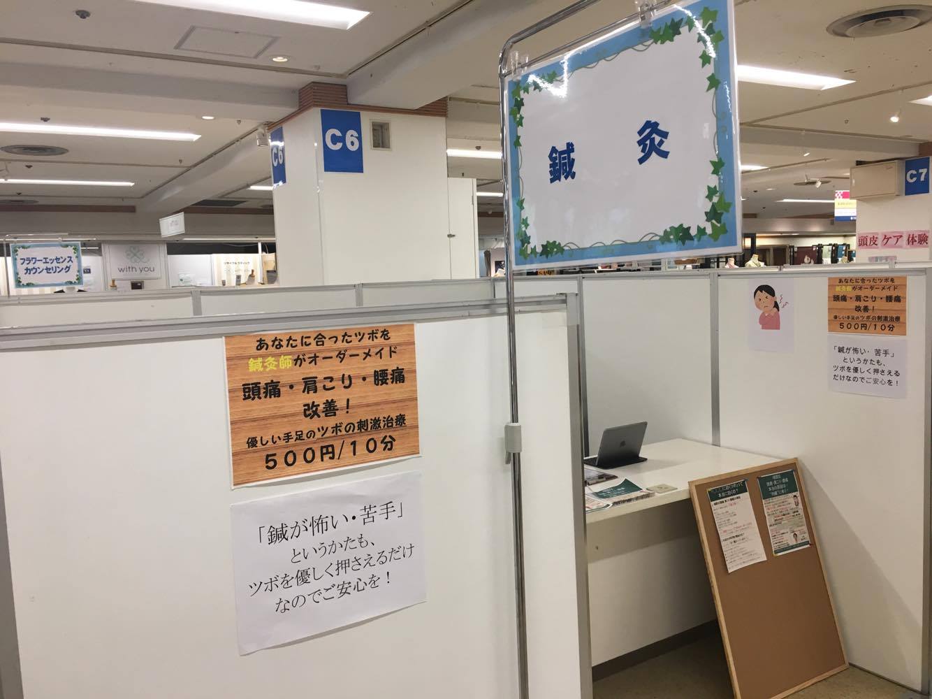 知人の鍼灸師のかたにご紹介いただき、看護師さんや理学療法士さんなど他の医療業種のかたと一緒に、“こころとからだの健康”に関する様々な治療の体験や、健康状態をみる測定法をワンコインで気軽に受けていただくという企画になります。