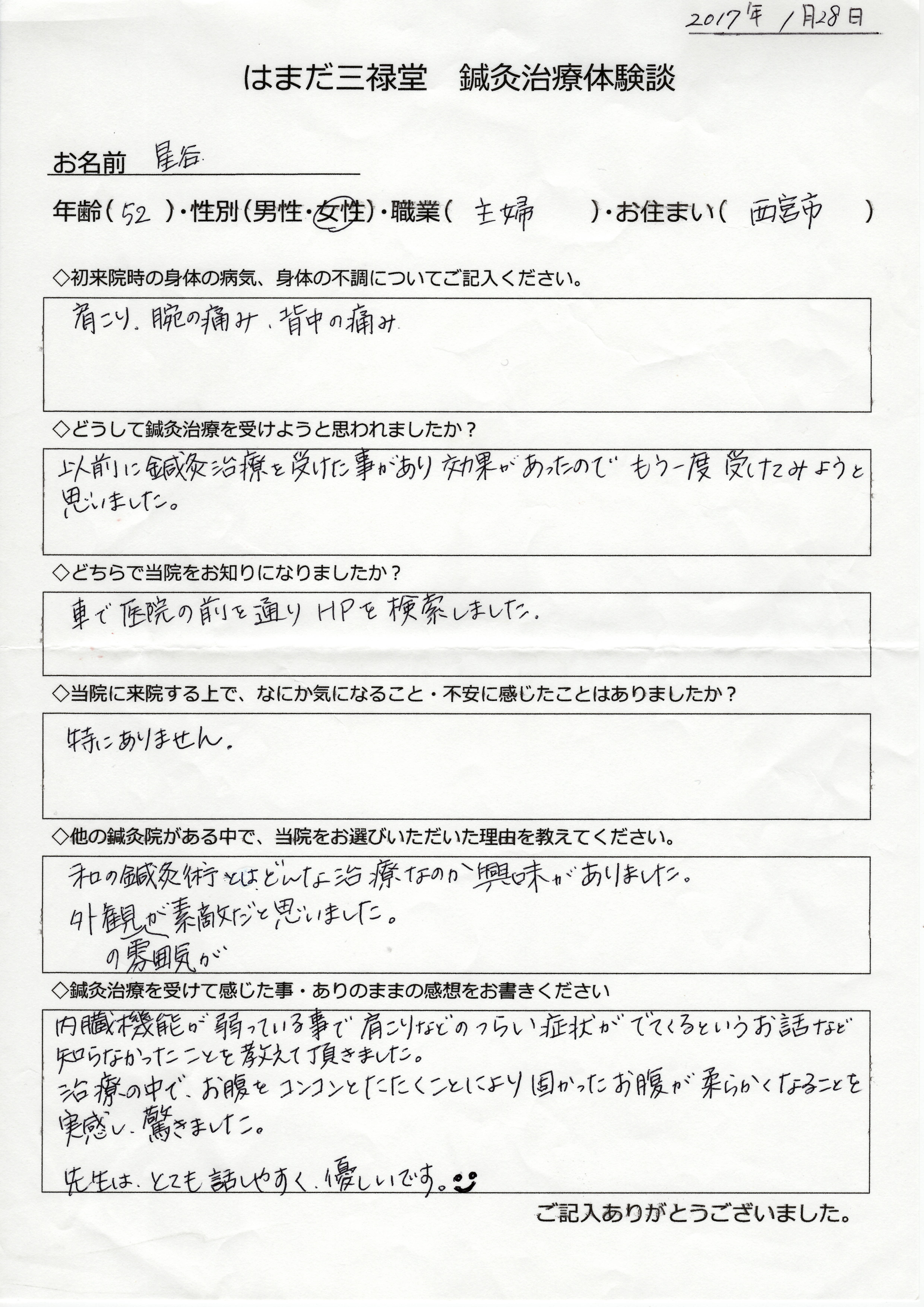 ◇鍼灸治療を受けて感じた事・ありのままの感想をお書きください。